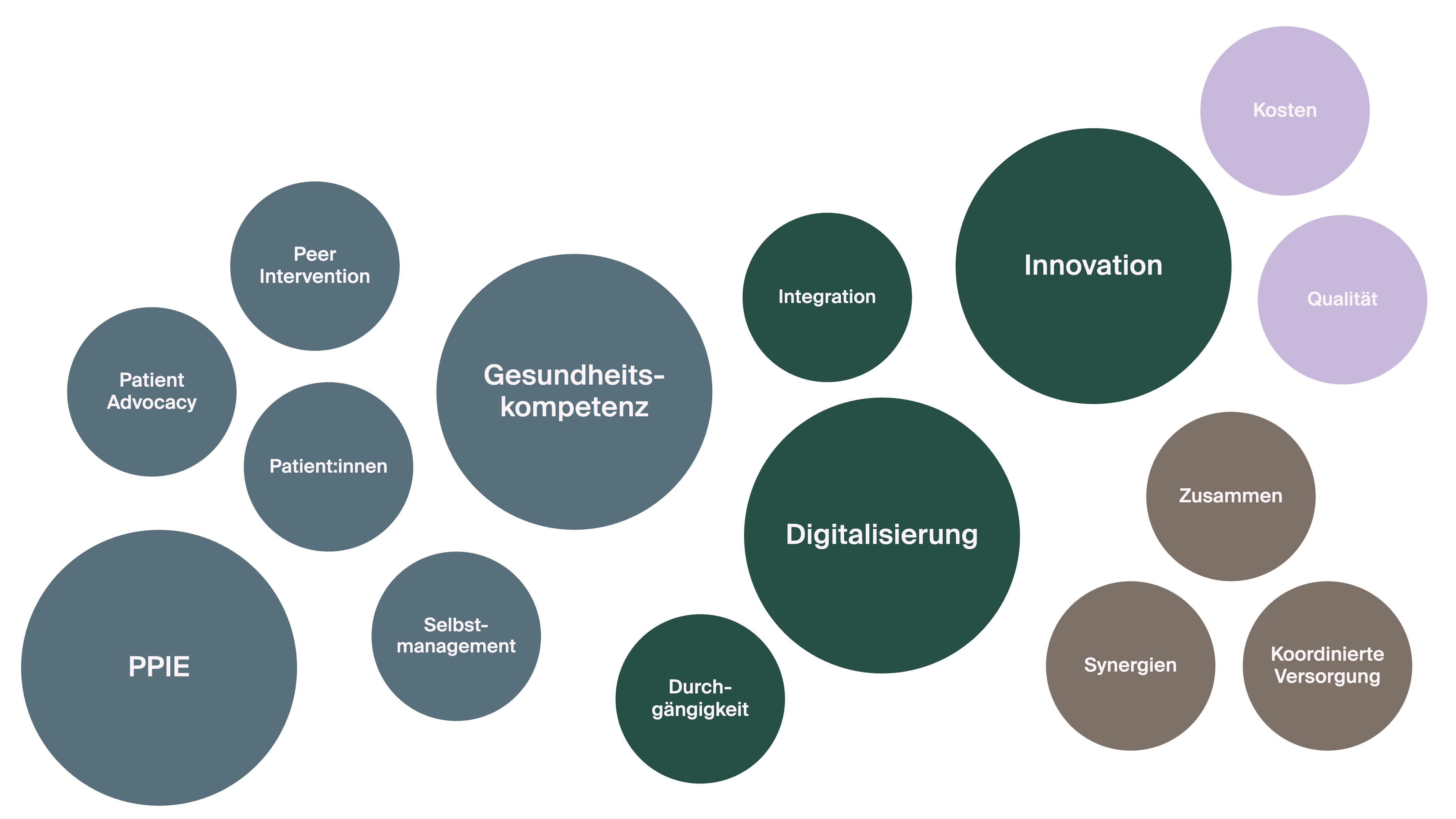 Auch die Ergebnisse aus den Gruppendiskussionen spiegeln dieses Bild klar: Ein integriertes Gesundheitssystem bedeutet für die Teilnehmenden, dass Silostrukturen aufgebrochen und durch vernetzte, koordinierte und durchlässige Strukturen ersetzt werden. Es braucht sinnvolle Anreizsysteme, ein ganzheitlicheres Gesundheitsverständnis, transparente Datenstrukturen, eine integrierte digitale Infrastruktur und vor allem eine gemeinsame Haltung: Zusammenarbeit auf Augenhöhe und echte Mitgestaltung.